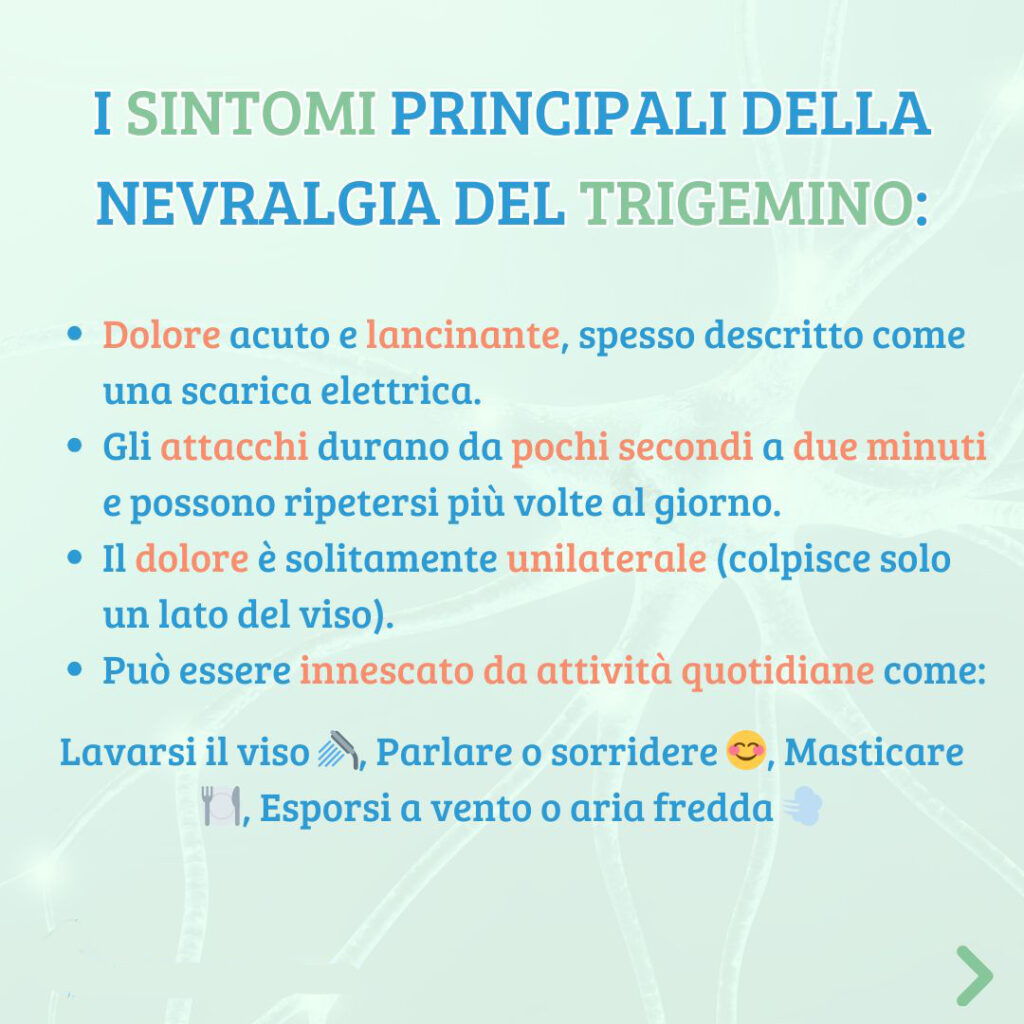 Il sintomo distintivo della nevralgia del trigemino è un dolore improvviso, intenso, acuto e lancinante, spesso descritto dai pazienti come una scossa elettrica o una pugnalata. L’intensità del dolore può essere talmente forte da risultare insopportabile e invalidante per chi ne soffre.